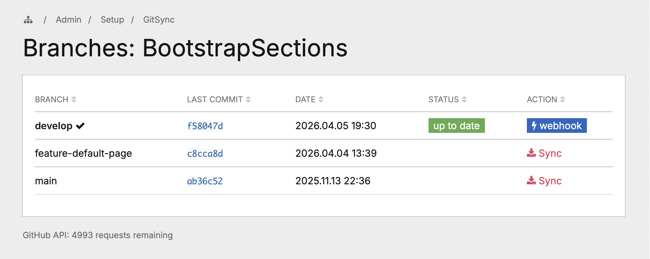 - Self-updating (syncing GitSync itself) works but may require a page reload.