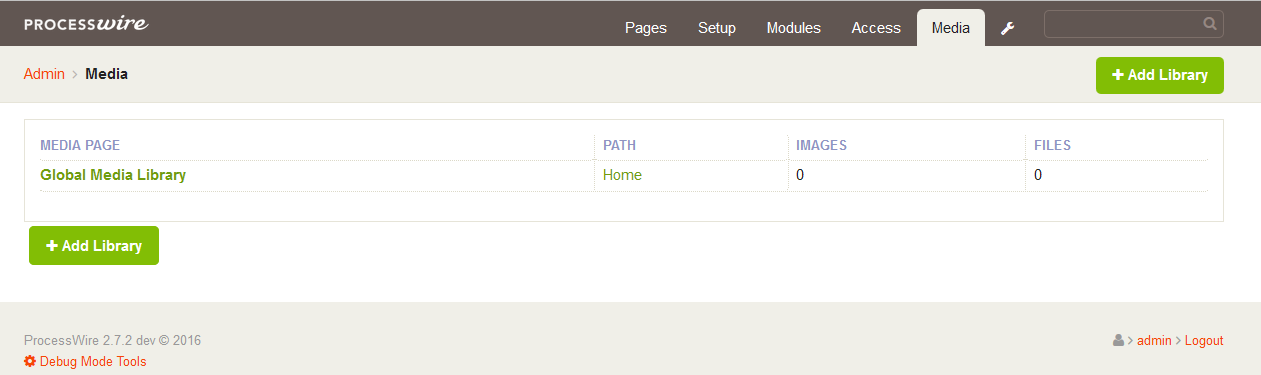 This module adds a MediaLibrary template with MediaImages and MediaFiles fields to ProcessWire.