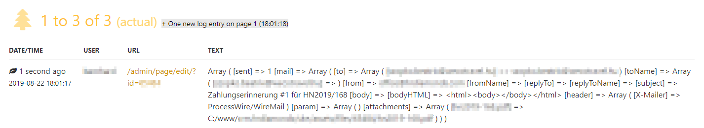 WireMail Mail Logger, also known as RockMailLogger, is a new module released just this week by Bernhard Baumrock. In a nutshell this module adds an entry to a ProcessWire log file for each message sent using WireMail.
