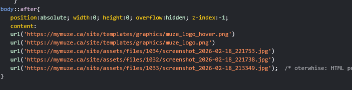 Right, I had hoped loading them through CSS would fix the problem somehow, but forgot about that 😬 That explains that part, thank you, Markus! Locally the page always loaded correctly, but I have sanitised the code a bit and perhaps introduced a mistake, although sometimes the pictures do load fine. I'll try your suggestions and get back to you. -