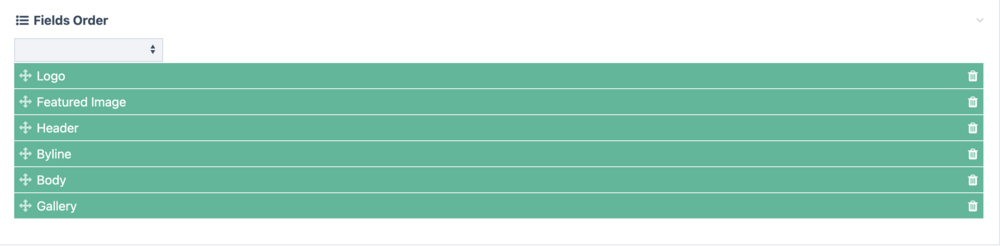 Looks like I was able to do this thanks to @adrian suggestions here. I used the FieldtypeFields to create an ordered flow of fields which can alter the frontend markup. Here are the fields inside a page: and here is my Latte template file as an example. Re-ordering the fields in works to change the order of the markup. Wonderful! <section> <div class="uk-width-1-1 uk-height-viewport uk-padding-large uk-flex uk-flex-column uk-flex-center" uk-scrollspy="cls: uk-animation-fade; target: > div; delay: 300; repeat: false;" > {foreach $page->fields_order as $field} {if $field == 'logo'} {* logo *} <div class="uk-width-1-2 uk-text-center uk-margin-large-bottom"> {$page->get('logo')->markup|noescape} </div> {/if} {if $field == 'featured_image'} {* get featured image *} <div class="uk-height-1-1"> <img src="{$page->$field->first->url}" alt="{$page->$field->description}" class="uk-width-1-1 uk-margin-large-bottom"> </div> {/if} {if $field == 'header' || $field == 'byline'} {* headings + byline *} <div> <div class="uk-width-1-1 visbycf-text"> {if $field == 'header'} <h1 class="uk-heading-hero uk-text-center">{$page->$field|noescape}</h1> {/if} {if $field == 'byline'} <p class="uk-text-large uk-text-center">{$page->$field|noescape}</p> {/if} </div> </div> {/if} {if $field == 'body'} {* body *} <div class="uk-width-1-1 visbycf-text"> <p class="uk-text-large uk-text-center"> {$page->$field|noescape} </p> </div> {/if} {if $field == 'additional_body'} {* body *} <div class="uk-width-1-1 visbycf-text"> <p class="uk-text-large"> {$page->$field|noescape} </p> </div> {/if} {if $field == 'gallery'} {* gallery *} <div class="uk-margin-large-bottom"> {$rockfrontend->render("/sections/includes/gallery.latte")} </div> {/if} {if $field == 'additional_gallery'} {* gallery *} <div class="uk-margin-large-bottom"> {$rockfrontend->render("/sections/includes/gallery.latte")} </div> {/if} {/foreach} </div> </section> I have a question as to how to move this one Fields Order field into a new custom tab under the Page Edit Admin ? Anyone know how this can be achieved ? Thanks,