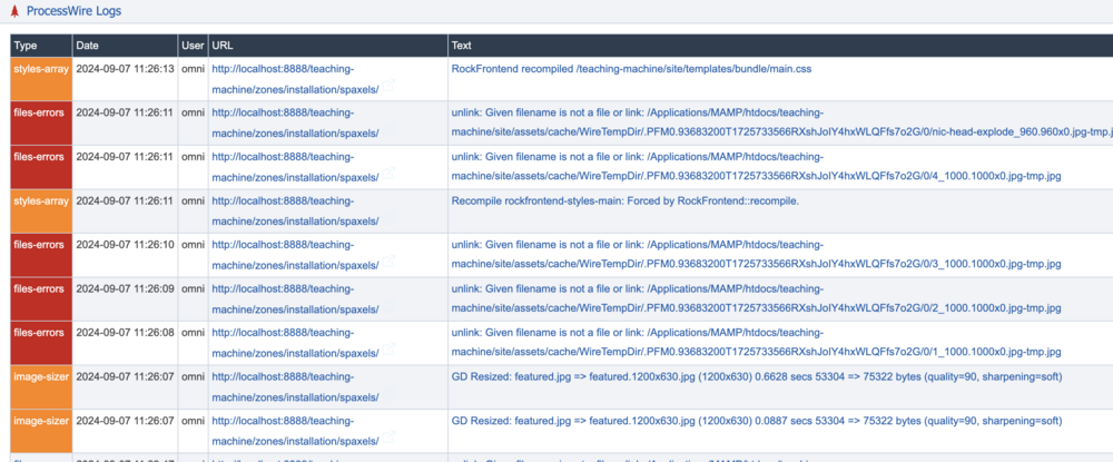 Hi PW Community, I have a local PW site (latest version) running in MAMP that has slowed to a crawl after I installed ProFields modules and activated them. Tracy Debugger shows many file errors, having to do with some cache / PW temporary directory ? The issue *seems* to go away after the page finally loads, on a page-by-page basis, but even then … I am still getting file-errors on those same pages. Is there a way to clear/rebuild the entire cache at once ? Is that the issue here ? Any pointers appreciated.