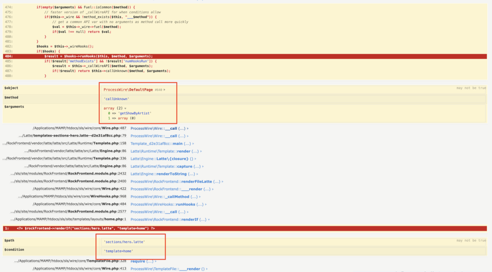 Attepting to Fetch Pages Based Off of Field Match in Latte Filterprotro replied to protro's topic in General Support thank you so much @bernhard for showing the method for building a module. I really appreciated this answer. I ended up modifying the code to for a simplified extension of a Custom Page Class, in case anyone else want's to see how that works. in DefaultPage.php <?php namespace ProcessWire; class DefaultPage extends Page { public function getShowByArtist() { return $this->wire()->pages->get("template!=news-item, artist.name='{$this->name}'"); } } and in the template like so: <a href="{$item->getShowByArtist()->url}"> {$item->title} </a> By the way @bernhard, maybe you could elaborate something I encountered that I can't quite piece together. This function `getShowByArtist()` is getting called on the home template, and on the front-end appears on the homepage, but when I tried adding the above function declaration to HomePage.php custom page class, I would get exceptions that the function is unavailable/not call-able. I am using the Rockfrontend method such that in site/templates/layouts/home.php <?= $rockfrontend->renderIf("sections/home.latte", "template=home") ?> And in home.latte is where I am calling the function inside of the a href (as above). However, it only seems to work when I put the getShowByArtist() function declaration inside of the DefaultPage.php custom page class … even though in Tracy Debugger it shows my template as home and the class as \ProcessWire\HomePage on the page in which this function gets invoked (correctly). Why could that be ? Any ideas ? Again, your help has been much appreciated. I might leave the function inside DefaultPage.php for now.