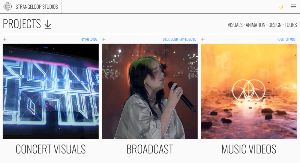 Hello ProcessWire Community, It is with great pleasure that I share with you the new site for our company Strangeloop Studios, a visual design lab and animation studio based in Los Angeles. We specialize in content for musical artists but have branched into VR, Broadcast, and Music Video projects as well. This is my first site using ProcessWire. I went from complete PW beginner (October 2022) to this re-design and catalog of our various projects in the space of several months. Lurking here on the forums and visiting all of the stellar work that gets shared on the Showcases has taught me a lot. Many thanks to @bernhard for the Rockfrontend module, and @flydev for their Duplicator module. I probably wouldn't have been able to get this far without those … so, many thanks for your contributions! I also appreciate the feedback to my questions in the forums from several users who have improved my understanding of PW with detailed explanations. Things I would like to improve: optimizations for image delivery Multi-language support Looking forward to building more with ProcessWire! Cheers,