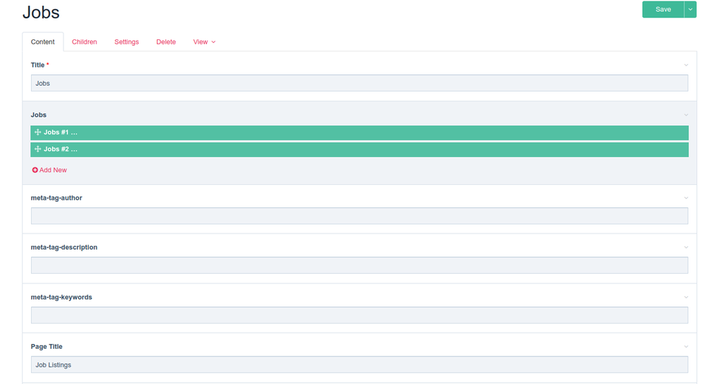 Hello everyone! I am new to ProcessWire and I am working on a personnel websiite where jobs can be posted. I created a repeater called "jobs" which contains a series of sub-fields such as the job_title, job_status, job_location, etc. I then created a page and referenced the appropriate template for the jobs page. It works very well, but one thing I don't like is when editing the jobs page, the repeater fields show up as "Jobs #1", "Jobs #2", etc. (see image) I'm concerned that when the number of jobs grows, it will be a pain to maintain it because you will have to expand each of the job listings to find the one you wish to change. Is there a simple way to replace the "Jobs #1", etc labels with one of the sub-fields, such as "job_title"? That way I can easily edit the job I need. I know I can expand all items, but that is also not the best if the number of jobs grows.