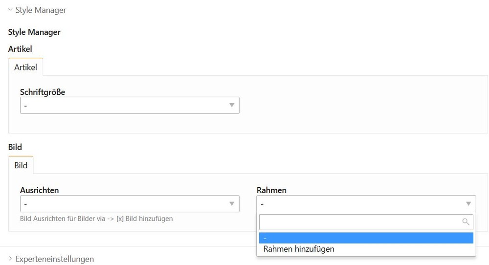 oh, even more ... 😄 In Contao CMS you can define styles in a central place, which you can then easily select and assign in different places. that's really great 😉 ... just in case.... define: select: -