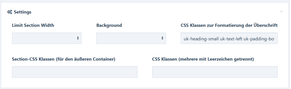 @Klenkes - that's really really clever! Thank you very much for sharing! So I created a module that does nothing but load an additional admin.css. and because my settings can be so different in size, I rebuilt the CSS a bit. /* Stile für die settings-Tabelle der RockPageBuilder-Blocks*/ .rpb-settings .uk-table tbody { display: flex; flex-wrap: wrap; gap: 16px; } .uk-table tbody .rpb-setting { display: flex; flex-direction: column; /* Zellen in einer Spalte platzieren */ flex: 1 1 200px; box-sizing: border-box; padding: 8px; border: 1px solid #ddd; } /* Stile für die `<td>`-Zellen */ .uk-table tbody .rpb-setting td:first-child { font-weight: bold; margin-bottom: 8px; } .uk-table tbody .rpb-setting td:last-child { flex-grow: 1; } /* Abstände für kleine Bildschirme reduzieren */ @media (max-width: 600px) { .uk-table tbody { flex-direction: column; gap: 8px; } .uk-table tbody .rpb-setting { padding: 4px; /* Kleinere Innenabstände */ margin-bottom: 4px; /* Reduzierter Abstand nach unten */ flex: 1; } .uk-table tbody .rpb-setting td:first-child { margin-bottom: 4px; /* Weniger Abstand zwischen den Zellen */ } } -