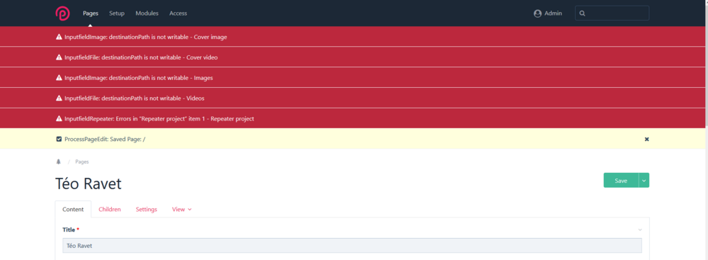 Hello, I basically misclicked my htaccess folder into being synced with my Drive (don't ask me how). While the local site I was working on under htaccess still functions, I cannot edit anything anymore in PW without getting "destinationPath is not writable" on save. While the folder is now back to being completely unsync'd with Drive, the issue still persists and it seems it has permantently messed something up in the PW install. Thankfully I'm in no rush and would like to take this as a learning opportunity. I'm still mainly a designer and still not so familiar with many things backend-related. Feel free to ask me anything more you'd need to know.