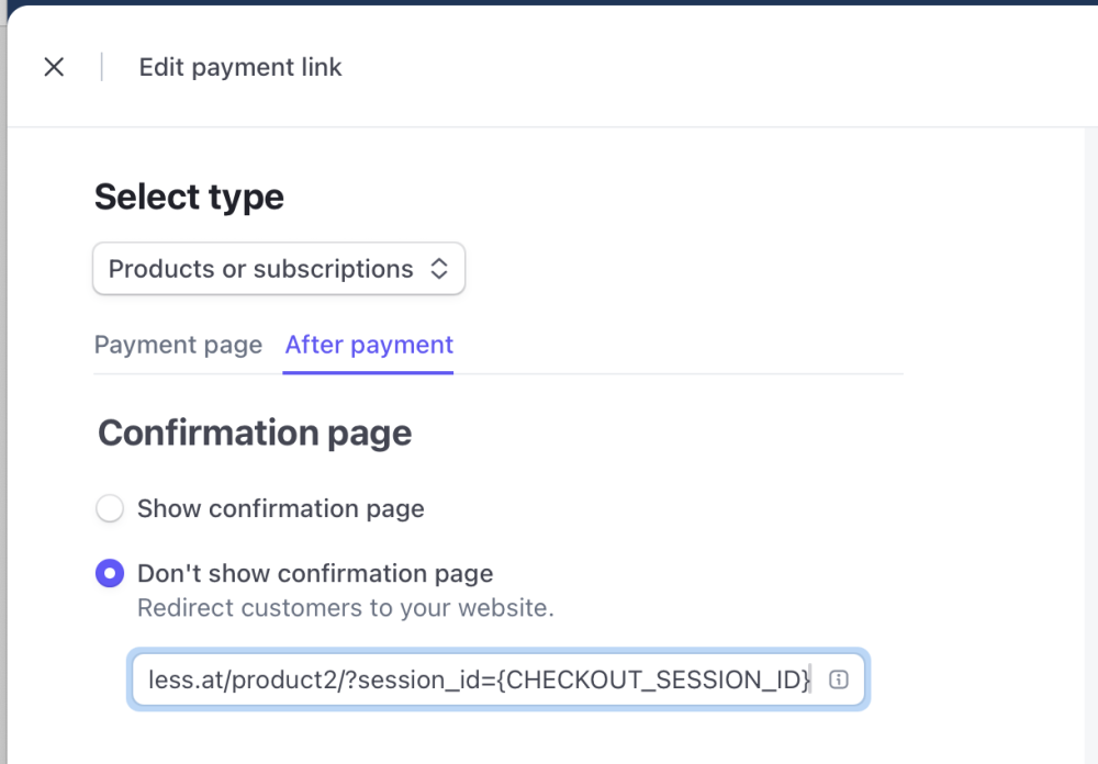 module StripePaymentLinks – Simple Checkout Integration for ProcessWireMikel replied to Mikel's topic in Modules/Plugins Because this question came up: No, the user does not have to enter any data before checkout. All user data is pulled via Stripes PHP SDK (included with the module). Therefore the only thing needed for the module to work is that the redirect link configured in Stripe contains the session_id param. You configure this directly in the Stripe backend by simply adding ?session_id={CHECKOUT_SESSION_ID} to your desired redirect-URL: Thats all. With this session id the module has access to all data of this specific purchase. Cheers, Mike