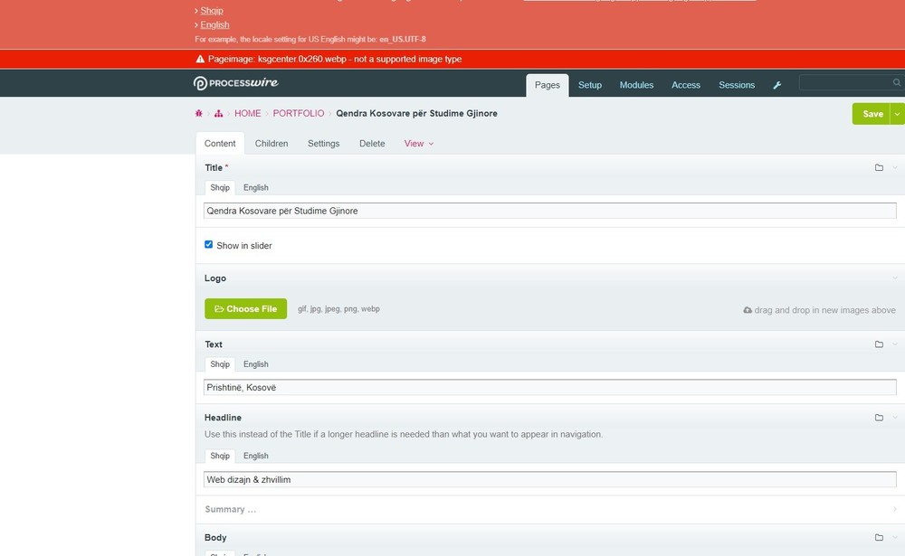 Hello all, I am trying to enable webp support for images, but i am having some problems with it. Somehow i have uploaded some images but i cannot delete them from field, when i try to delete it is log me out of processwire. See attached screenshots. P.s my server supports webp images. On my server logs i have only these errors: [Mon Jun 01 21:57:30.399211 2020] [fcgid:warn] [pid 26424] [client 162.158.88.107:22838] mod_fcgid: stderr: #4 /public_html/wire/core/ProcessController.php(337): ProcessWire\\Wire->__call('executeEdit', Array), referer: /setup/language-translator/edit/?language_id=1154&textdomain=wire--modules--languagesupport--languagesupport-module&filename=wire/modules/LanguageSupport/LanguageSupport.module [Mon Jun 01 21:57:30.399219 2020] [fcgid:warn] [pid 26424] [client 162.158.88.107:22838] mod_fcgid: stderr: #5 public_html/wire/core/Wire.php(380): ProcessWire\\ProcessController->___execute() setup/language-translator/edit/?language_id=1154&textdomain=wire--modules--languagesupport--languagesupport-module&filename=wire/modules/LanguageSupport/LanguageSupport.module [Mon Jun 01 21:57:30.399226 2020] [fcgid:warn] [pid 26424] [client 162.158.88.107:22838] mod_fcgid: stderr: #6 /public_html/wire/core/WireHooks.php(823): ProcessWire\\Wire- in /public_html/wire/modules/LanguageSupport/ProcessLanguageTranslator.module on line 634, referer: /setup/language-translator/edit/?language_id=1154&textdomain=wire--modules--languagesupport--languagesupport-module&filename=wire/modules/LanguageSupport/LanguageSupport.module Can anyone point me to right direction? Thanks in advance