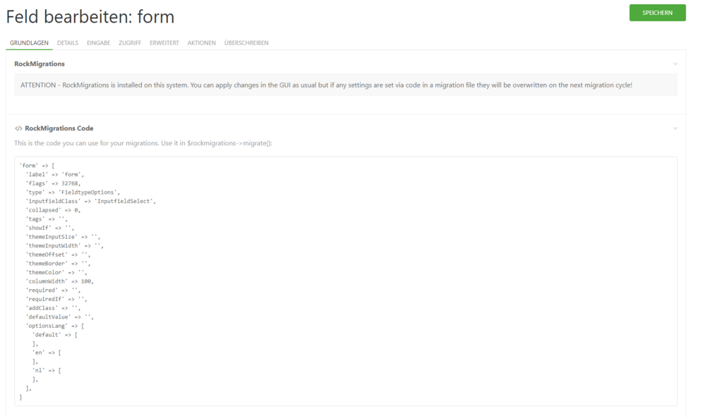 Welcome to our lovely community, Rasso. I hope you are enjoying the benefits of ProcessWire as much as I do. We had the discussion about replicating / syncing fields on the server many times. I use RockMigrations as a reliable and working module for this. You write code with migrations and they get executed as soon as you save the file and refresh the admin. A migration can be inside the site/migrate.php file, or in a migrate method inside of your custom module, or somewhere else. Here is a possible example of a migration: $rm->migrate([ 'fields' => [ 'body' => [ 'label' => 'Content', 'type' => 'FieldtypeTextareaLanguage', 'inputfieldClass' => 'InputfieldTinyMCE', 'tags' => 'generic', 'contentType' => 1, 'langBlankInherit' => 1, 'inlineMode' => 0, 'height' => 500, 'lazyMode' => 1, 'features' => [ 0 => 'toolbar', 1 => 'menubar', 2 => 'stickybars', 3 => 'spellcheck', 4 => 'purifier', 7 => 'pasteFilter', ], 'toolbar' => 'styles bold italic pwlink pwimage blockquote hr bullist numlist anchor code', 'rows' => 15, ], 'home_intro' => [ 'label' => 'Home Intro', 'type' => 'textarealanguage', 'tags' => 'generic', 'inputfieldClass' => 'InputfieldTinyMCE', 'rows' => 5, 'inlineMode' => 1, ], 'subheadline' => [ 'type' => 'text', 'inputfieldClass' => 'InputfieldTextLanguage', 'maxlength' => 100, 'tags' => 'generic', ], ], 'templates' => [ 'basic-page' => [ 'label' => 'Standardseite', 'fields' => [ 'title', 'navtitle', 'seo', ], ], 'imprint' => [ 'label' => 'Impressum', 'fields' => [ 'title', 'body', 'seo', ], ], ] ]); With the migration you can also create pages and even fill them with content (if you want that) $rm->createPage(title: 'About us', name: 'about-us', template: 'basic-page', parent: '/'); There is no sync between fields or templates you create in the admin and RockMigrations (there was a YAML option once, but I don't know if it still exists), but you get an easy to copy code in each fields edit section, that you can copy directly over to your migration. I am also in favor that migrations should be a core feature of ProcessWire, but Ryan does not approve. So we have to stick with what we have, and RockMigrations is a great solution. -