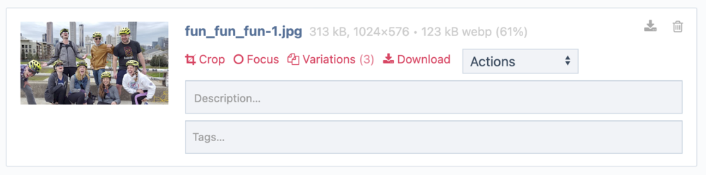 This week we've got a few minor issue fixes and a couple of pull request additions on the dev branch. Pull request #251 thanks to @Jan Romero added a download button to the thumbnail images in InputfieldImage. I wasn't sure we really needed that, but really liked his thinking behind it, which was envisioning the ability to add more custom buttons/actions for images. So while I didn't specifically add the download button, I added the proposed system for adding any custom buttons, and then applied that same thinking to some other parts of InputfieldImage. And we'll talk about how to add that Download button here. ? First, let's look at how you might add your own download button, and note we're using this as just an example, as you might add any kind of button this way. A new hookable getImageThumbnailActions() method was added for this purpose. So here's how you might hook it (in /site/ready.php) to add a download button: $wire->addHookAfter('InputfieldImage::getImageThumbnailActions', function(HookEvent $event) { $image = $event->arguments(0); // Pageimage $class = $event->arguments(3); // class to use on all returned actions $a = $event->return; // array $icon = wireIconMarkup('download'); $a['download'] = "<a class='$class' href='$image->url' download>$icon</a>"; $event->return = $a; }); With that hook in place, here's what it looks like when you hover a thumbnail image. And if you click that Download icon, it downloads the file to your computer: or in list mode (download icon appears in right corner next to trash): I was thinking it would be useful to also be able to add custom actions after you click the thumbnail, and it shows the image edit features. So let's add a Download button there instead, by hooking the new getImageEditButtons() method: $wire->addHookAfter('InputfieldImage::getImageEditButtons', function(HookEvent $event) { $image = $event->arguments(0); // Pageimage $class = $event->arguments(3); // class(es) to use on all returned actions $buttons = $event->return; // array, indexed by action name $icon = wireIconMarkup('download'); $buttons['download'] = "<button class='$class'><a download href='$image->url'>$icon Download</a></button>"; $event->return = $buttons; }); And the result looks like this (see new Download button after Variations button): We also have that Actions dropdown that you see in the screenshot above. This is already hookable but we've not had any good examples of it. In this case, you need two hooks: one to add the action to the <select> and another to handle the processing of the action when the page is saved. So in our next example, we'll demonstrate how to display verbose EXIF information about whatever image(s) the action was selected for. In this first hook, we'll add the action to the Actions <select>: // Example of adding an “Get EXIF data” action to the <select> $wire->addHookAfter('InputfieldImage::getFileActions', function(HookEvent $event) { $image = $event->arguments(0); // Pageimage if($image->ext == 'jpg' || $image->ext == 'jpeg') { $actions = $event->return; // array $actions['exif'] = 'Get EXIF data'; $event->return = $actions; } }); And in this next hook, we'll handle the action, which gets called when the page editor form is submitted: // Example of handling an “Get EXIF data” action $wire->addHookAfter('InputfieldImage::processUnknownFileAction', function(HookEvent $event) { $image = $event->arguments(0); $action = $event->arguments(1); if($action === 'exif' && file_exists($image->filename)) { $exif = exif_read_data($image->filename); $event->warning([ "EXIF data for $image->name" => $exif ], 'icon-photo nogroup'); $event->return = true; } }); And here's what it shows after you hit save (for any images that had the action selected): The screenshot above is truncated because it was about twice is big as what's above. All the above code examples are also included in the phpdoc for each of the relevant hookable methods in the InputfieldImage module. For another recent useful addition, be sure to check out ProcessWire Weekly #454 (last week) which covered some new options available for the language translation functions like __text('hello'); where you can now tell it what kind of input type (and how many rows) to use in the admin translation interface, via inline PHP comments. Thanks for reading and I hope you have a great weekend!