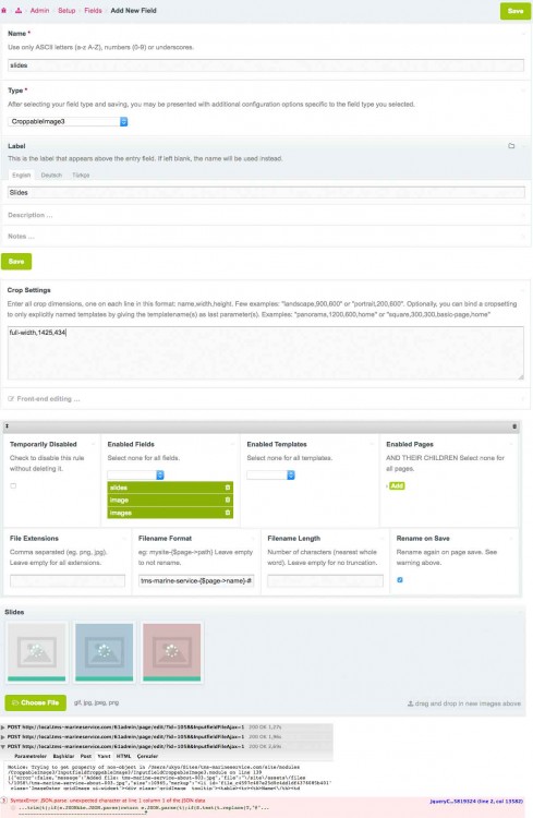 @horst thanks for your great module. Today i installed your module via module panel by class name and changed my image field with croppableimage field and i setted a size (full-width,1425,434) for this field. After click this size from images field i have below errors on opened modal box, i can see image and preview image. Notice: Undefined property: stdClass::$manualSelectionDisabled in /Users/user/Sites/site-folder/site/modules/CroppableImage3/ProcessCroppableImage3/ProcessCroppableImage3.module on line 47 Notice: Undefined property: stdClass::$useImageEngineDefaults in /Users/user/Sites/site-folder/site/modules/CroppableImage3/ProcessCroppableImage3/ProcessCroppableImage3.module on line 48 Notice: Undefined property: stdClass::$manualSelectionDisabled in /Users/user/Sites/site-folder/site/modules/CroppableImage3/ProcessCroppableImage3/ProcessCroppableImage3.module on line 120 I am using ProcessWire 3.0.36 version, I made fresh module installation.