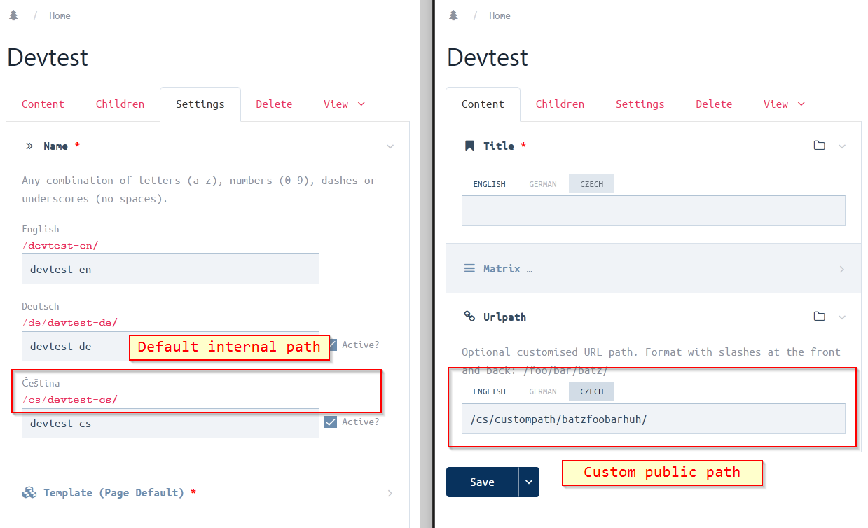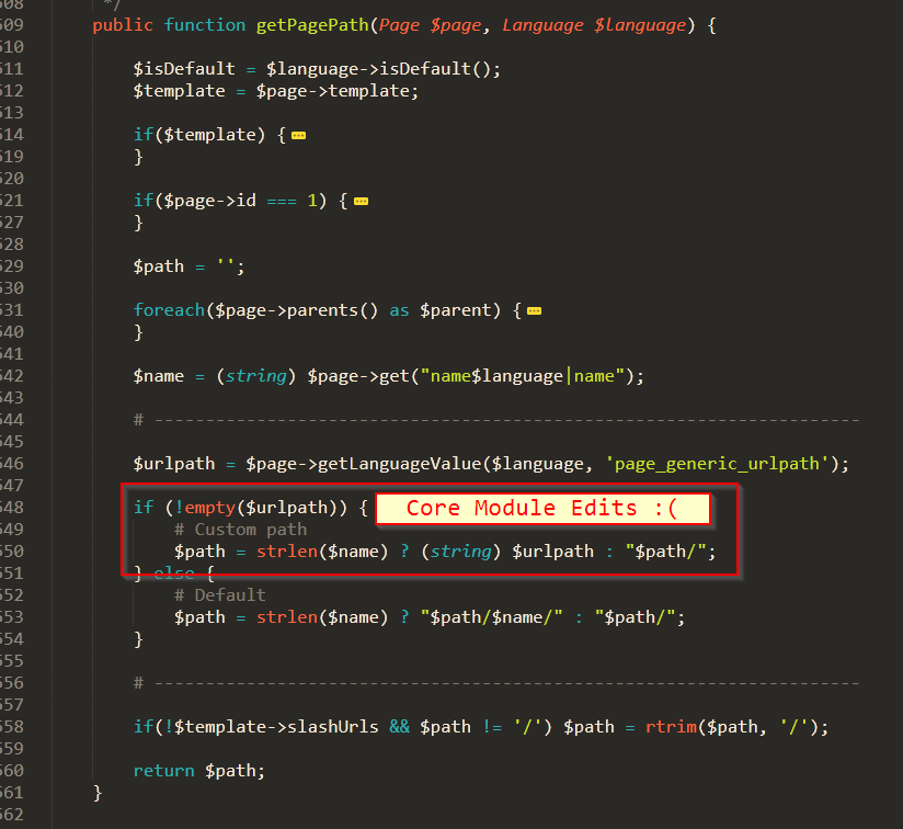 Since version 3.0.173, URL/path hooks are thankfully available. I built a solution to overwrite page paths using an input field on pages for the public. If filled, the Page::path hook returns my custom path string, which means URLs etc. are even auto-updated. A second hook checks all incoming requests and delivers the page by matching the defined path/URL. # ready.php // Change page path $wire->addHookBefore('Page::path', function($event) { $page = $event->object; if (!empty($page->page_generic_urlpath)) { $event->replace = true; $event->return = $page->page_generic_urlpath; } }); # ready.php // Route page path back $wire->addHook('/([a-zA-Z0-9-/]+)/', function($event) { $urlpath = '/' . $event->arguments(1) . '/'; $page = $event->pages->findOne('page_generic_urlpath=' . $urlpath . ', include=hidden'); return $page->id && $page->viewable ? $page : $event->return; }); This works fine as long as multilanguage support is not required. However, with multiple languages, it becomes much more complicated. The Page::path hook is useless, and the logic needs to be implemented in LanguageSupportPageNames->getPagePath(), which is not hookable. In short, I can't find a good way to map my multilingual custom paths from an input field to the corresponding localized language paths. I ended up making minimal edits in LanguageSupportPageNames->getPagePath() to replace multilingual paths when necessary. However, I would prefer an elegant solution over a "core module hack". Does anyone have a good idea for changing page language local paths via hooks? In my tests, Page::localPath is neither hookable nor defined with underscores. Changing the deeper internal language logic seems impossible. Or not?! 🙂