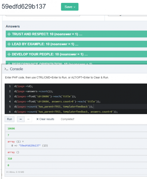 hm... now this is weird thanks for clarifying - yes, i have more than 3 pages with non-empty answers. see the screenshot - does anybody has an idea what could be going on?! the field's name is "answers" (see line 2 of console). maybe this is related to my multilang setup? shouldn't that be irrelevant? thanks for your help!
