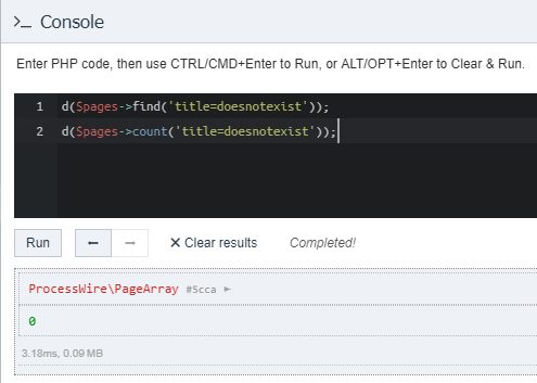 just replace your find() with a count(). find() returns an empty pagearray so the IF statement is TRUE: