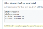 hi guys! unfortunately i can't get soma's version of the module to work. i have a vagrantbox and configured my hosts file to serve the following domains: config.hostsupdater.aliases = ["web.dev", "multi1.web.dev", "multi2.web.dev", "web1.dev", "web2.dev", "www.web1.dev", "www.web2.dev"] i can reach a clean 2.6 installation via all domains i installed somas module i created 2 new pages: /home/www.web1.dev and /home/www.web2.dev when i visit www.web1.dev -> still the frontpage of the installation (default intermediate profile); same for www.web2.dev i can visit those pages via www.web1.dev/www.web1.dev/ and same for web2 i tried apeisa's version and it worked - unfortunately i did not make it to get subdomains working (site1.web.dev, site2.web.dev). but anyway i would prefer to use somas module do you think that could be related to vagrant? unfortunately i have no live server where i can try it out at the moment... help would be very, very appreciated! ps: module configuration: www.web1.dev www.web2.dev tried everything with and without www