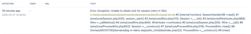 Hi All! Specs: Processwire [3.0.246] RockFrontend [5.1.0] RockMoney [3.0.2] RockMigrations [6.7.1] PHP 8.3 MySQL server with InnoDB engine Subdomain ( configured via DNS point to subfolder of public_html, works as expected ) I’ve been trying to install RockCommerce on a fresh install, but the installation fails caused by a timeout, With RockMigrations From v6.6.0 and onward the site gives a timeout error when trying to install RockCommerce. With RockMigrations From v6.5.0 the site doesn’t timeout but gives a error: ModulesInstaller: Unable to install module (RockCommerce): Can’t save page (id=0): /discounts/: It has no parent assigned This setup partially installs the module for later gives me this: ProcessWire: ProcessModule: Can’t save page (id=0): /discounts/: It has no parent assigned DEBUG MODE BACKTRACE ($config->debug == true): #0 /home/u855151783/domains/big-in-fabric.be/public_html/merge/wire/core/Pages.php(841): ProcessWire\PagesEditor->save() #1 /home/u855151783/domains/big-in-fabric.be/public_html/merge/wire/core/Wire.php(419): ProcessWire\Pages->___save() #2 /home/u855151783/domains/big-in-fabric.be/public_html/merge/wire/core/WireHooks.php(968): ProcessWire\Wire->_callMethod() #3 /home/u855151783/domains/big-in-fabric.be/public_html/merge/wire/core/Wire.php(484): ProcessWire\WireHooks->runHooks() #4 /home/u855151783/domains/big-in-fabric.be/public_html/merge/wire/core/Page.php(2418): ProcessWire\Wire->__call() #5 /home/u855151783/domains/big-in-fabric.be/public_html/merge/site/modules/RockMigrations/RockMigrations.module.php(1101): ProcessWire\Page->save() #6 /home/u855151783/domains/big-in-fabric.be/public_html/merge/site/modules/RockCommerce/RockMigrations/afterAssets.php(6): ProcessWire\RockMigrations->createPage() #7 /home/u855151783/domains/big-in-fabric.be/public_html/merge/site/modules/RockMigrations/RockMigrations.module.php(4267): require('/home/u85515178...') #8 /home/u855151783/domains/big-in-fabric.be/public_html/merge/site/modules/RockMigrations/RockMigrations.module.php(4298): ProcessWire\RockMigrations->runConfigHooks() #9 /home/u855151783/domains/big-in-fabric.be/public_html/merge/site/modules/RockMigrations/RockMigrations.module.php(3524): ProcessWire\RockMigrations->runConfigMigrations() #10 /home/u855151783/domains/big-in-fabric.be/public_html/merge/site/modules/RockMigrations/RockMigrations.module.php(4172): ProcessWire\RockMigrations->migrateWatchfiles() #11 /home/u855151783/domains/big-in-fabric.be/public_html/merge/site/modules/RockMigrations/RockMigrations.module.php(5656): ProcessWire\RockMigrations->run() #12 /home/u855151783/domains/big-in-fabric.be/public_html/merge/wire/core/WireHooks.php(1094): ProcessWire\RockMigrations->triggerMigrations() #13 /home/u855151783/domains/big-in-fabric.be/public_html/merge/wire/core/Wire.php(484): ProcessWire\WireHooks->runHooks() #14 /home/u855151783/domains/big-in-fabric.be/public_html/merge/wire/modules/Process/ProcessModule/ProcessModule.module(389): ProcessWire\Wire->__call() #15 /home/u855151783/domains/big-in-fabric.be/public_html/merge/wire/core/Wire.php(413): ProcessWire\ProcessModule->___execute() #16 /home/u855151783/domains/big-in-fabric.be/public_html/merge/wire/core/WireHooks.php(968): ProcessWire\Wire->_callMethod() #17 /home/u855151783/domains/big-in-fabric.be/public_html/merge/wire/core/Wire.php(484): ProcessWire\WireHooks->runHooks() #18 /home/u855151783/domains/big-in-fabric.be/public_html/merge/wire/core/ProcessController.php(361): ProcessWire\Wire->__call() #19 /home/u855151783/domains/big-in-fabric.be/public_html/merge/wire/core/Wire.php(413): ProcessWire\ProcessController->___execute() #20 /home/u855151783/domains/big-in-fabric.be/public_html/merge/wire/core/WireHooks.php(968): ProcessWire\Wire->_callMethod() #21 /home/u855151783/domains/big-in-fabric.be/public_html/merge/wire/core/Wire.php(484): ProcessWire\WireHooks->runHooks() #22 /home/u855151783/domains/big-in-fabric.be/public_html/merge/wire/core/admin.php(174): ProcessWire\Wire->__call() #23 /home/u855151783/domains/big-in-fabric.be/public_html/merge/site/templates/admin.php(18): require('/home/u85515178...') #24 /home/u855151783/domains/big-in-fabric.be/public_html/merge/wire/core/TemplateFile.php(328): require('/home/u85515178...') #25 /home/u855151783/domains/big-in-fabric.be/public_html/merge/wire/core/Wire.php(413): ProcessWire\TemplateFile->___render() #26 /home/u855151783/domains/big-in-fabric.be/public_html/merge/wire/core/WireHooks.php(968): ProcessWire\Wire->_callMethod() #27 /home/u855151783/domains/big-in-fabric.be/public_html/merge/wire/core/Wire.php(484): ProcessWire\WireHooks->runHooks() #28 /home/u855151783/domains/big-in-fabric.be/public_html/merge/wire/modules/PageRender.module(581): ProcessWire\Wire->__call() #29 /home/u855151783/domains/big-in-fabric.be/public_html/merge/wire/core/Wire.php(416): ProcessWire\PageRender->___renderPage() #30 /home/u855151783/domains/big-in-fabric.be/public_html/merge/wire/core/WireHooks.php(968): ProcessWire\Wire->_callMethod() #31 /home/u855151783/domains/big-in-fabric.be/public_html/merge/wire/core/Wire.php(484): ProcessWire\WireHooks->runHooks() #32 /home/u855151783/domains/big-in-fabric.be/public_html/merge/wire/core/WireHooks.php(1094): ProcessWire\Wire->__call() #33 /home/u855151783/domains/big-in-fabric.be/public_html/merge/wire/core/Wire.php(484): ProcessWire\WireHooks->runHooks() #34 /home/u855151783/domains/big-in-fabric.be/public_html/merge/wire/modules/Process/ProcessPageView.module(193): ProcessWire\Wire->__call() #35 /home/u855151783/domains/big-in-fabric.be/public_html/merge/wire/modules/Process/ProcessPageView.module(114): ProcessWire\ProcessPageView->renderPage() #36 /home/u855151783/domains/big-in-fabric.be/public_html/merge/wire/core/Wire.php(416): ProcessWire\ProcessPageView->___execute() #37 /home/u855151783/domains/big-in-fabric.be/public_html/merge/wire/core/WireHooks.php(968): ProcessWire\Wire->_callMethod() #38 /home/u855151783/domains/big-in-fabric.b