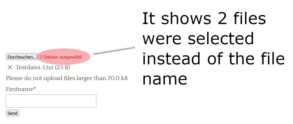 I have found the issue: This only happens if the ID and name attribute are exactly the same on a single upload field. If there is a difference, everything works as expected, so I have added an additional suffix to the ID attribute of a file upload field to prevent this behavior. display-change.MP4 Now everything should work fine! Module version is updated, so please test if everything works now as expected.