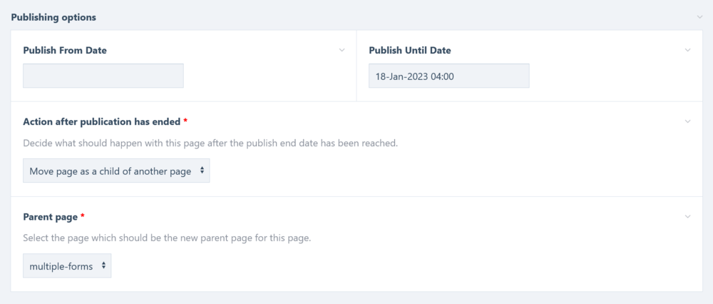 This is a reissue of a module of mine called "PublishingOptions", that I wrote a while ago. The big difference is that this module is written in PHP 8 and has some nice additional features. The old module could only publish and unpublish pages depending on date and time settings, but the new version goes much further. So you can decide what should happen after the publication end date has been reached. You have the following options: Unpublish the page - this is what the old version did Move the page to trash - new Delete the page permanently- new Move the page to a new position in the page tree - new The last option will be interesting if you want to move the page fe to an archive after a certain date. You can select the new parent page and after the publication end date has been reached, the page will be moved under the new parent page. You will find a more detailed instruction and download possibility at https://github.com/juergenweb/JkPublishPages This module is Alpha stage and should be tested carefully before using it on live sites. I have planned to add this module to the PW module download section, so everyone is invited to test it out and to report issues directly at GitHub. Thanx