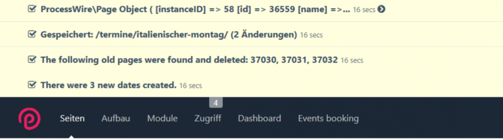 Oh I understand! I only check after starting the hook if it is the right template and then make some manipulations. So it would be better to check before starting the hook if it is the right template. Thats the current case: $pages->addHookAfter('saveReady', function($event) { $page = $event->arguments(0); $page->of(false); $pages = wire('pages'); $name = $page->template->name; if(in_array($page->template->name, ['event_businessvacations', 'event_dates', 'event_events', 'event_specialbusinesshours'])){ ........ } }); But this would prevent the hook to be triggered on every page: $pageid = $input->get('id'); if(in_array(wire('pages')->get($pageid)->template->name, ['event_businessvacations', 'event_dates', 'event_events', 'event_specialbusinesshours'])){ $pages->addHookAfter('saveReady', function($event) { $page = $event->arguments(0); $page->of(false); $pages = wire('pages'); $name = $page->template->name; ........ }); } Is that what you mean? -