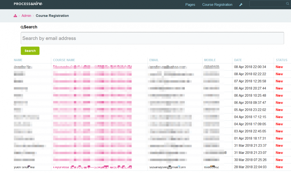 Parse Error: syntax error, unexpected '[', expecting ')' (line 46 of /home/intaladmin/domains/intalentlara.com.hk/public_html/site/modules/ProcessRegistration.module) This error message was shown because: you are logged in as a Superuser. Error has been logged. The process module code <?php class ProcessRegistration extends Process { public static function getModuleInfo() { return array( 'title' => 'Course Registration', 'version' => 1, 'summary' => 'Course Registration', 'permission' => 'registration-admin', 'page' => array( 'name' => 'registration', 'parent' => '', 'title' => 'Course Registration' ) ); } public function init() { parent::init(); } public function execute() { $out = ''; $selector = 'template=registration'; $out .= "<div class='container'>"; $out .= "<form action='./' method='post'>"; $out .= "<div style='margin-bottom:10px;margin-top:10px;'><label for='keyword' style='width:100%;font-size:1.25em;'><i class='fa fa-search'></i><strong>Search</strong></label></div>"; $out .= "<div><input class='ui-corner-all' style='width:100%;line-height:2em;font-size:1.5em;' type='text' name='keyword' id='search-box' placeholder='Search by email address' /></div>"; $out .= "<button style='margin:10px 0;' class='ui-button ui-widget ui-corner-all ui-state-default' name='button' value='Add New' type='submit'><span class='ui-button-text'>Search</span></button>"; $out .= "</form>"; $out .= "</div>"; if($this->input->post->keyword) $selector .= ",email_address%=".$this->input->post->keyword; $selector .= ",sort=-created"; $registration = $this->pages->find($selector); if(count($registration)==0) { $out .= "No person registered."; } else { $table = $this->modules->get("MarkupAdminDataTable"); $table->headerRow(["NAME", "TITLE", "EMAIL", "MOBILE", "DATE", "STATUS"]); $table->setEncodeEntities(false); foreach($registration as $reg) { //$status = $this->pages->get(1225)->title; $status = $this->pages->get("$reg->reg_status"); if($status=="1225") { $color = "red"; } elseif($status=="1226") { $color = "green"; } elseif($status=="1227") { $color = "blue"; } $status = "<strong style=color:{$color}>".$this->pages->get("$reg->reg_status")->title."</strong>"; //$status = $reg->reg_status; $data = array( $reg->reg_name, "{$reg->title}"=>$this->config->urls->admin."page/edit/?id=".$reg->id, $reg->email_address, $reg->mobile, date("d M Y h:i:s", $reg->date_submission), $status, ); $table->row($data); } } return $out; } } The error pointed to this line of code $table->headerRow(["NAME", "TITLE", "EMAIL", "MOBILE", "DATE", "STATUS"]); In local development environment, there is no such an error when clicking the process module tab. After upload those local files to public test server, this error occur. The public test server is running php 5.3 local dev server is running 7.0.x PW 2.8.35