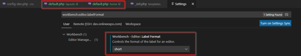 Good evening (at least here where I'm at))! Wireframe has a lot of files named the same way (default.php). When working with multiple files in an IDE (read "all the time") it is hard to distinguish between tabs as they are all named the same. At least it is in VS Code due to this issue. I am used to give files meaningful (bul long) names. I used to have templates/views/home/home.view.php instead of templates/views/home/default.php. Files are better searcheable this way too. Do you know any workarounds? Could it be worth it to have default filenames in Wireframe have configurable patterns, so that something like templates/views/home/home.view.php was possible?