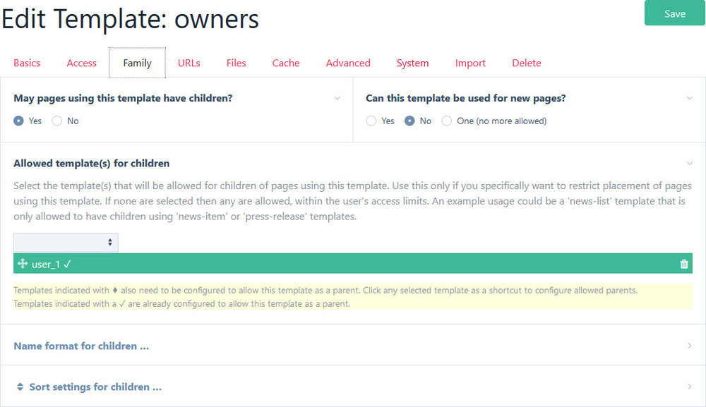 I think I've done that correctly. Please see attached. user_1 has an id of 57. owners has an id of 58. So I've added $config->userTemplateIDs = array(3, 57); $config->usersPageIDs = array(29, 58); to config.php.