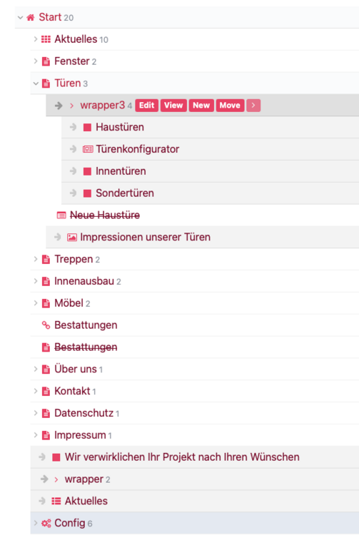 Yes of couse All pages with white background are pages. The grey background are page contents. So I have an easy way to rearrange, move or extend. The warm grey sections is for header and Footer wich works in the same way as the pages. So it can have page content like logo or navigation. So you see the main Page "Kanzlei" have 6 page contents. The hero, a text component, the Expertise with some sub pages, Team, News and Events. In this case all of these have subpages. Other example: (Schreinerei Merte) You see a Wrapper wich just create a wrapping div around some kind of content. Output: