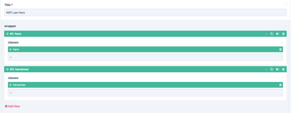 On the template: (you see the module approch) getComponent gets all allowed page components, loads it template files, wraps it if needed. Every component has a wrapper builder where I can choose what css class it will use. this will wrap this component into <div class="hero"> <div class="heroinner"> {COMPONENT-CODE} </div> </div>