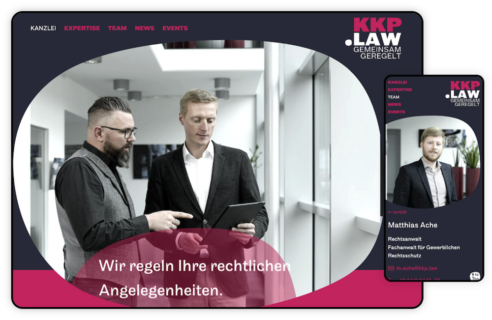 The KKP.LAW site has been a Site of the Week in Processwire Weekly in the past. For this reason I would like to share some insights. So I hope someone will get an inspiration and maybe others may provide idees how to improve my process. Development Setup Currently I build my projects with DDEV and upload them to the server using Github Actions. This way I can view and develop them locally and push them to live when I am done. I also have SCSS which I write to a src folder and is watched by DDEV and also by the GitHub action. So it is possible to change SCSS via a browser in GitHub and everything will be deployed automatically. The basics The KKP.LAW was the last project before I develop this orocess with modules. But the basics are almost the same. Years ago I used Typo3 for building websites. But the really complex update routine, the complicated configuration and the ongoing change how you should build templates made it necessary for me to look for a new CMS. So Wordpress was never an option and many others were also very complicated, so I looked at ProcessWire. After a second look I really understood the approach and built my first websites with Processwire. Very quickly I switched from Typo3 to Processwire. Implementing new features into existing websites was so easy with it. But one thing I really liked in Typo3 was the concept of pages and page content. On each page you can have multiple page contents. I.e. text or images or a mix of both. So I started to rebuild this logic in Processwire. I have templates for pages and templates for page contents. I use a page and pagecontent tag for the different types. On the PHP templates I just need to include them. So each page collects its page content children. All page contents can have a wrapper with some css classes. So it is easy to create layouts with this system. CSS Framework For this I use a kind of own CSS framework which is much more individual than big ones like Bootstrap. Personally I like the concept of 10 columns. So I have a 10 + 4 + 3 column system. Paddings are always added inside a column. So I dont need rows. All page content is inside a div tag with display: flex; flex-wrap: wrap;. The result is very clean and I get a slim file sizes. Components Later I changed the page content more into components. They are not as powerful as in modern JavaScript framework. It was more a logical step for me. In my eyes, the massive classes I would need to build responsive websites always displeased me. So more and more I changed my approach to design and configure everything in a component with maybe one or two classes and do the rest in CSS. But in some cases the old approach is still good. Current approach So I made some modules for my basic needs. The current module is very personal build arrount my needs and my DDEV configuration. Each component (or page content) has its own module. So it has some methods, PHP template and basic scss which I bind into my deployment process. I wrote a bash script that sets up ddev, installs Processwire and these modules. Also creates a GitHub brunch with the required action that can be synced into a live server. - So this is a basic overview of my approach. Hope it is an inspiration for you. Questions and suggestions are very welcome. See Website: KKP.LAW My own website: (also Processwire) Jens Weigel – Büro für Design