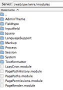It has multiple lines saying (date/time changes): ––– 2014-09-12 09:28:57 ? http://www.klauser-design.ch/pw/?/ Error: Exception: DirectoryIterator::__construct(/mnt/sites/klauser-design.ch/web/pw/wire/modules/): failed to open dir: No such file or directory (in /mnt/sites/klauser-design.ch/web/pw/wire/core/Modules.php line 354) ––– Line 354 in this specific file is: ––– $dir = new DirectoryIterator($path); ––– @diogo: – thanks for the hint about the error log – same result with the «edit»-button next to the «Modules»-page