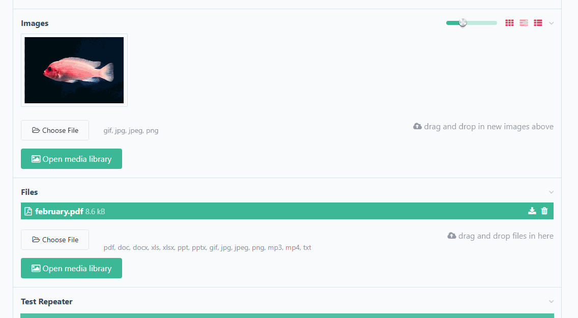 @Stefanowitsch asked about using the File Mover module with a "media library" page that is accessed via a modal. I thought I would share some hook code publicly in case it's useful for others too. // Add a button to file and image fields to open a media library page in a modal // Hook InputfieldFile::render to affect file and image fields, // or InputfieldImage::render to affect only image fields $wire->addHookAfter('InputfieldFile::render', function(HookEvent $event) { $inputfield = $event->object; // The field associated with the inputfield (if any) $field = $inputfield->hasField; // The page containing the inputfield (if any) $page = $inputfield->hasPage; // Don't add the button to fields on the media library page // as we don't want the possibility of nested modals if($page && $page->template == 'media_library') return; // You can also check the field name if the button should only be added to a specific field, e.g. // if($field && $field->name !== 'article_images') return; // Get the media library page $media_library = $event->wire()->pages->get("template=media_library"); // Construct the URL to edit the media library page $url = $media_library->editUrl; // Add &modal=1 so the admin header isn't shown $url .= '&modal=1'; // We don't need other tabs or fields besides the image/file field(s), // so specify the field name(s) in the URL // Unfortunately there is this layout bug: https://github.com/processwire/processwire-issues/issues/1972 $url .= '&field=images,files'; /** @var InputfieldButton $f */ $f = $event->wire()->modules->get('InputfieldButton'); $f->href = $url; $f->value = 'Open media library'; $f->icon = 'picture-o'; // Add pw-modal class so the button link opens in a modal $f->addClass('pw-modal'); // Make it a large modal $f->addClass('pw-modal-large'); // Add a bit of space above the button $f->attr('style', 'margin-top: 10px;'); // Append the rendered button to the inputfield $event->return .= $f->render(); });
