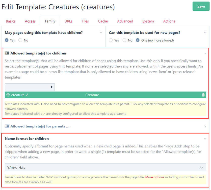 I think a better way is to skip the Add Page step and then make sure the title is always automatically derived from your two fields when they are populated. There are a few steps involved, illustrated here with case that is different to yours but you can see the similarity. In this example the template of the parent page that new pages are added under is named "creatures", and the child template (where the title is being set automatically) is named "creature". 1. For the "creatures" template, make sure that it allows a single template for children: the "creature" template. 2. For the "creatures" template, in the "Name format for children" setting enter "Y/m/d H:i:s". This will allow the "Add Page" step to be skipped and will automatically set the page name to the current date and time. We will later change the name in a hook. 3. Optional but recommended: for the "creature" template, choose the "creatures" template as "Allowed template(s) for parent". This lets you quickly add child pages via Pages > Add New and also ensures that new pages can't be added in the wrong place. 4. For the "creature" template, edit the Title field in the template context and set the visibility to "Open when populated + Closed when blank + Locked (not editable)". The title is going to be set automatically so editors should not be able to change it manually. 5. Add hooks like the ones below to /site/ready.php. // Pages::added $pages->addHookAfter('added', function(HookEvent $event) { /** @var Page $page */ $page = $event->arguments(0); // Creature if($page->template == 'creature') { // This is a newly added page so the fields that make up the title won't be populated yet $page->setAndSave('title', 'New creature'); } }); // Pages::saveReady $pages->addHookAfter('saveReady', function(HookEvent $event) { /** @var Page $page */ $page = $event->arguments(0); /** @var Pages $pages */ $pages = $event->object; // Creature if($page->template == 'creature') { // Return early if the page is in the trash (thanks @taotoo) if($page->isTrash) return; // If the fields that make up the title are populated if($page->colour->id && $page->animal->id) { // Set the title $page->title = "{$page->colour->title} {$page->animal->title}"; // Sanitize the title as a page name $name = $event->wire()->sanitizer->pageName($page->title, true); // Set the page name while making sure it auto-increments if there is a sibling page with the same title $page->name = $pages->names()->uniquePageName($name, $page); } } }); Result:
