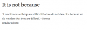 @BernhardB Ah, thank you for your many tips! I am learning fast by doing things wrong I am trying your improved code suggestion now... UPDATE: It worked! Successful result: Below is a breakdown of the steps I took in very simple terms for other beginners to follow (all credit to previous posters, especially @Horst and @BernhardB - you are truly patient ). Steps for creating random quote/text selection from a large pool (for an absolute beginner) All steps are completed through the ProcessWire admin panel, unless otherwise stated. These steps assume you are using the _main.php and _init.php files in your templates. Build a page called tools. This serves as a parent for stuff that is not used to be displayed directly in the frontend. Assign this page the pw_default template. Set the page to hidden. When saving this page, choose 'save + keep unpublished'. Create a new template called quote_category. This template only needs one field: title. Later, you will use the title field of this template to enter categories you want to use to classify quotes. Note: this is different to @horst's suggestion of a generic category field only for scalability - if you need to make other categories for other types of information in the future, and don't want them both to be called by the same function. In the code editor of your choice, create a file called quote_category.php. In the body of the file, enter: <?php // quote_categories.php template file Save this file to your computer. Using an FTP program, upload this file to your processwire installation at: site/templates/. Create a page under tools called quote_categories. This serves as parent for the categories you use to classify your quotes. Assign this page the pw_default template. Set the page to hidden. When saving this page, choose 'publish'. Under the page quote_categories, create child pages. Assign each child page the quote_category template. In the title field of each new child page, enter the name of one category you need. For every child page, set the page to hidden. When saving each child page, choose 'publish'. Create as many child pages as categories you need. Create some fields to be used on a new template (see next step): field label: Quote text field name: quote_text field type: textarea or text (depending on how long your quotes are, and how much formatting they require) field label: Quote Author field name: quote_author field type: text field label: Quote Category field name: quote_category field type: page Note: for this field, there are extra settings required - you can find them under the 'Input' section of field options. input field type: ASMselect* parent of selectable pages: /tools/quote_categories Any other field you need. For example, I have a quote_reference field to cite where the quote came from. This is not necessary though. Create a new template called quotes. Add the templates you just created to this template: quote_text, quote_author, quote_category and any others you made. In the code editor of your choice, create a file called quotes.php. In the body of the file, enter: <?php // quotes.php template file // Primary content goes here $content = "'" . $page->quote_text . "'". "—". $page->quote_author . "<br>" . "$page->quote_category"; Save this file to your computer. Using an FTP program, upload this file to your processwire installation at: site/templates/. Create a page under tools called quotes. This serves as parent for all single quote pages. Under the page quotes, create child pages. Assign each child page the quote_category template. When saving each child page, choose 'publish'. Create one child page for every quote you have. In an FTP client, download the template where you want a random quote to appear. In your code editor of choice, open the template where you want a random quote to appear. Enter the the following code: $quote = $pages->find("parent=/tools/quotes, quote_category.title=category1|category2")->getRandom(); //add nice formatting $quote_w_heading = "quote: '" . $quote->quote_text . "' —". $quote->quote_author; In the above example, replace the text 'category1|category' with the name of the category/ies you want to display a quote from. Then, at the $content or $sidebar function (or wherever you want your quote to display), add the following code to the end of the string: . $quote_w_heading So the $content string should look something like this: // Primary content goes here $content = $course_number_w_heading . $course_summary_w_heading . $recording . $quote_w_heading; Save your template file. Upload it back to to site/templates/ In your browser, view a page that uses the template you just changed. Refresh the view, and marvel at your new random quote appearing! Now that I have written out all these instructions, I see that this is perhaps not a beginner project. More experienced people, please offer corrections to any steps you see that could be improved. Thanks again all for your help! -