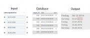 I have a couple of datetime fields wrapped in a multiplier field. I put in 02.01.2016 , the output is 02.01.2015. This happens only up to the 3rd of January 2016, with the 4th of January the output is okay again (04.01.2016). Checking the database entry shows the correct date (02.01.2016). See also the attached picture of the input, database and the output. Any idea what's happening here?