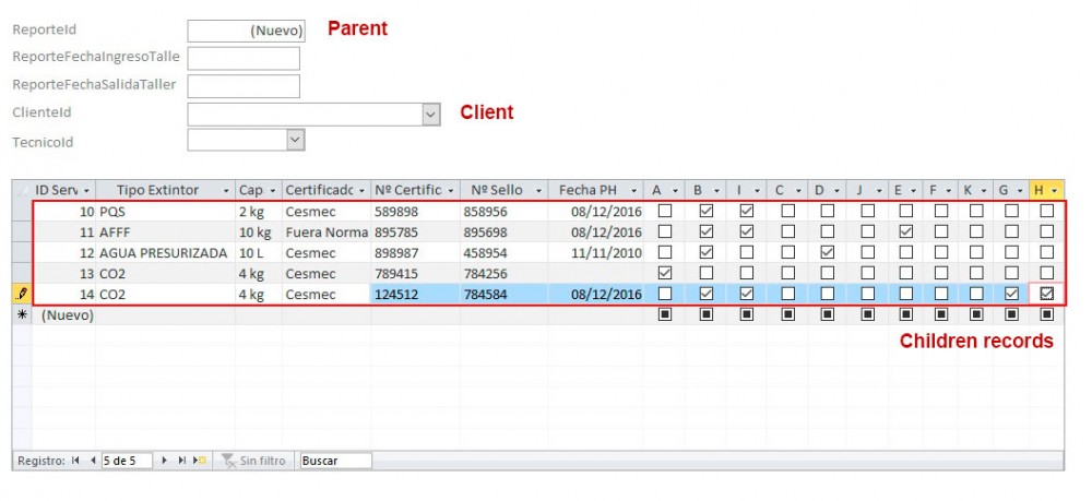 Hi there, I'm trying to imitate an application built on Microsoft Access, so far I have been able to create most of the functionality, I only lack a part destined to enter records that depend on a parent. I am attaching an image from Microsoft Access, where you can see the functionality that I need to create. I would like to be able to add each of those child records on the same template form for the Parent, then when I list the records of the Parent, I can get all the reports per client and in each of those reports the children records. It would be possible to build this with Processwire? Thank you!