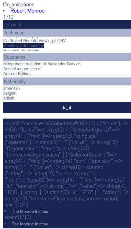 Hello Robin! You really helped me out the last time in this topic and I was wondering if you could help me figure out a much more complex filter using the logic you suggested? So, basically, what I need to do is: - filter one type of pages (Organisations) based on a field in another page type (Individuals) which has connection to (Techniques) and (Organisaions) How it looks: Individual has page reference field (a repeater, but it doesn't matter in the context, hence I only need one field in this repeater) called "Techniques" and a page reference field "Organisation". My filter is by Technique. What I am doing is: 1) filtering out all individuals who have selected technique in their technique_relation field; 2) looping through them to get the Organisations they are connected to in their organisation_relation field; 3) (where I fail) trying to match titles of Organisations from action (2) with titles of the list of Organisations I am filtering to make them appear in my matches. My issue is that I overwrite the variable with titles and not loop through it, so it works, but only for the last title. My code: // Build up a selector string $selector_org = "template=Organisation"; //making global var to not get error if there are no matches $org_name = $page->title; //create second selector $selector_ind = "template=Individual"; // get my Techniques $techniques = $pages->find("template=Technique"); //Get the array of techniques that the user has submitted via the form $selected_techniques_raw = $sanitizer->array($input->get('techniques_ind_org')); // Sanitize the techniques against the valid tags $selected_techniques = $sanitizer->options($selected_techniques_raw, $techniques->explode('name')); // Add the selected techniques to the selector string foreach ($selected_techniques as $selected_technique) { //I create another selector to pick the pages from Individuals who have selected technique picked in the field $selector_ind .= ", relation_individual_technique.relation_individual_technique_select= $selected_technique"; //find matching Individuals $matches_ind = $pages->find($selector_ind); //start looping through them foreach ($matches_ind as $match_ind) { //log Individuals echo " <li><a href='$match_ind->url'>$match_ind->title</a></li>"; //for each Individual I get the organisations they are related to // (because i need to end up with the list of Organisations in the end) foreach ($match_ind->relation_individual_organisation as $relation_individual_organisation) { //get array of selected Organisaions $array_orgs_ind = $relation_individual_organisation->relation_individual_organisation_select; //loop through hem to get the names foreach ($array_orgs_ind as $item_select) { //log names echo " <a href='$item_select->url'>$item_select->title</a>"; //try to create a variable for the selector to only pick pages with same titles from my list $org_name = $item_select->title; } } } //try to use the selector, but ofc var re-writes itself and works only for the last name $selector_org .= ", title= $org_name"; } If you can see something obvious I would really appreciate help! I am kind of stuck on that now... Best, Ksenia -