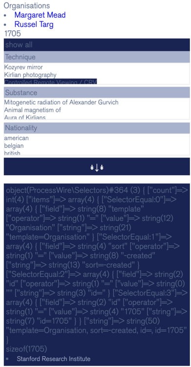Hello! Hm, this is very interesting! I see the bug, but can't tell how to fix it. Here is the example of picking two different Techniques (no changing of code) who both happened to have only one matched ID. One works and we can see that it has one Individual to loop through and selector is: "template=Organisation, sort=-created, id=1710" But when it loops through two Individuals, it is messed up: "template=Organisation, sort=-created, id=, id=1705"