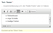 I'm having an issue with list-style-type in Inline Editor. A normal list ... <ul> <li>...</li> <li>...</li> </ul> looks in my Inline Editor like this: In the Regular Editor it looks how expected: I tried to modify the contents-inline.css with the following code to let the bullet points appear and the spaces between list-points disappear but no result. ul li { list-style-type: disc; margin: 0; padding: 0; } Has anyone an idea whats going wrong here? Thank you! (ProcessWire 2.6.1, CKEditor 4.4.6)