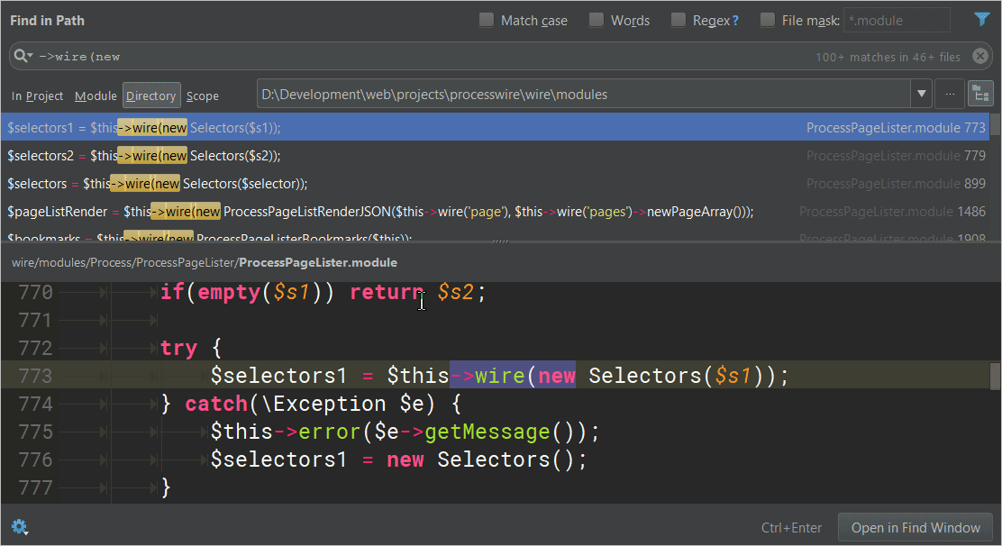 That makes it clear. I've also found this part from the core inside Wire class. <?php // /wire/core/Wire.php public function wire($name = '', $value = null, $lock = false) { // ... if(is_object($name)) { // make an object wired (inject ProcessWire instance to object) if($name instanceof WireFuelable) { if($this->_wire) $name->setWire($wire); // inject fuel, PW 3.0 if(is_string($value) && $value) { // set as new API var if API var name specified in $value $wire->fuel()->set($value, $name, $lock); } $value = $name; // return the provided instance } else { throw new WireException("Wire::wire(\$o) expected WireFuelable for \$o and was given " . get_class($name)); } } // ... } Here, setWire() method sets the instance. /** * Set the current ProcessWire instance for this object (PW 3.0) * * Specify no arguments to get, or specify a ProcessWire instance to set. * * #pw-internal * * @param ProcessWire $wire * */ public function setWire(ProcessWire $wire) { $this->_wire = $wire; $this->getInstanceNum(); } Another question @LostKobrakai: Does every single object from PW core needs an instance to be set? What classes are instance-critical, so to speak? -