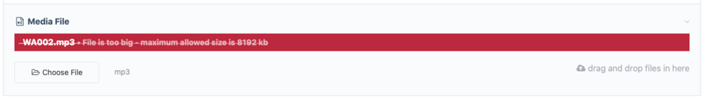 Hello guys, I'm trying to upload bigger files (audio files, about 50mb), but getting the error that the limit is only 9mb. I know, there is a limit in php.ini. Fortunately there is a newer way of uploading files, by splitting them in slices: https://deliciousbrains.com/using-javascript-file-api-to-avoid-file-upload-limits/ Is this way somehow possible with ProcessWire?