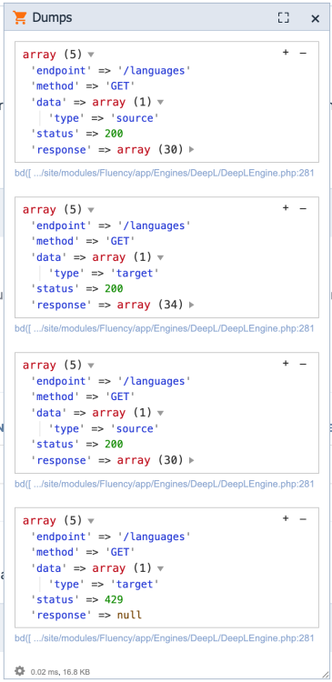 @FireWire Thank you! I tried that. I get the following dumps: The arrays list the available languages: The request that returns null has status code 429:- 301 replies