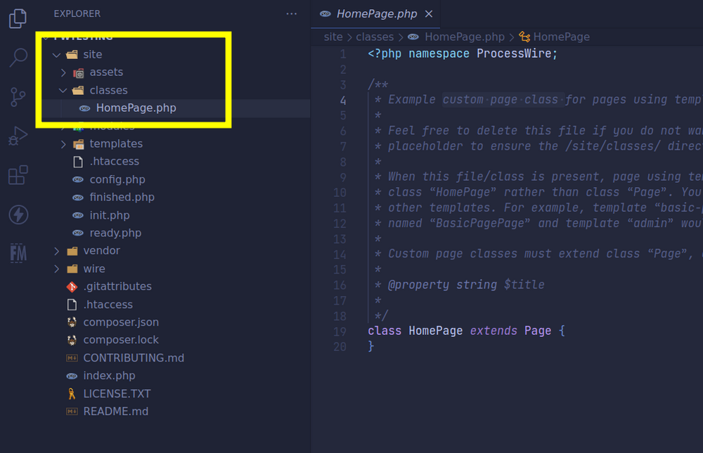 You see this? That's fine! It's part of ProcessWire since version 3.0.152 - see here: https://processwire.com/blog/posts/pw-3.0.152/#new-ability-to-specify-custom-page-classes It tries to extend the Page class.