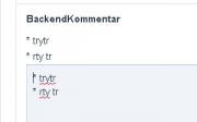 Hi folks, I try to realize a module/fieldtype, that shows a backend comment in the page editor. Therefore I extended a textarea field and changed the render method to render the input-value plus a textfield to change the value. Later I want to toggle the view state of preview/input field by doubleclick. This works (see image below). I thought it would be nice to use Markdown or textile for basic text styling via TextFormatter, but unfortunately I don't get output formatting to work in the backend, while it works well in the frontend context. Is there any difference in rendering between frontend/backend or did I get the method totally wrong? Here's a code snippet, I'm new in module programming and I tried different ways, so thank you for any hints: // in InputfieldBackendAnnotation public function ___render() { $this->config->scripts->add ($this->config->urls->InputfieldBackendAnnotation . "InputfieldBackendAnnotation.js"); $attrs = $this->getAttributes(); $value = $attrs['value']; unset($attrs['value']); $out = $this->___renderValue () . "\n" . "<textarea " . $this->getAttributesString($attrs) . ">" . $value . "</textarea>"; return $out; } Strange enough this formats the output with nl2br, but no other Markup.
