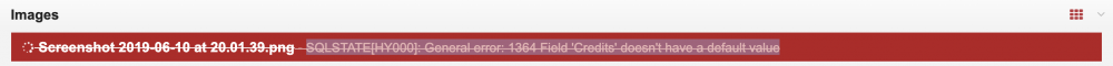 I haven’t touched the install at all ... Where do you see this? Is there a (temporary) „quick fix“ that you can see? Change this column to optional? Change the database column to accept null values and put default to null? Will also move this to the image extra spaces. Thanks a lot for your help, highly appreciated! -