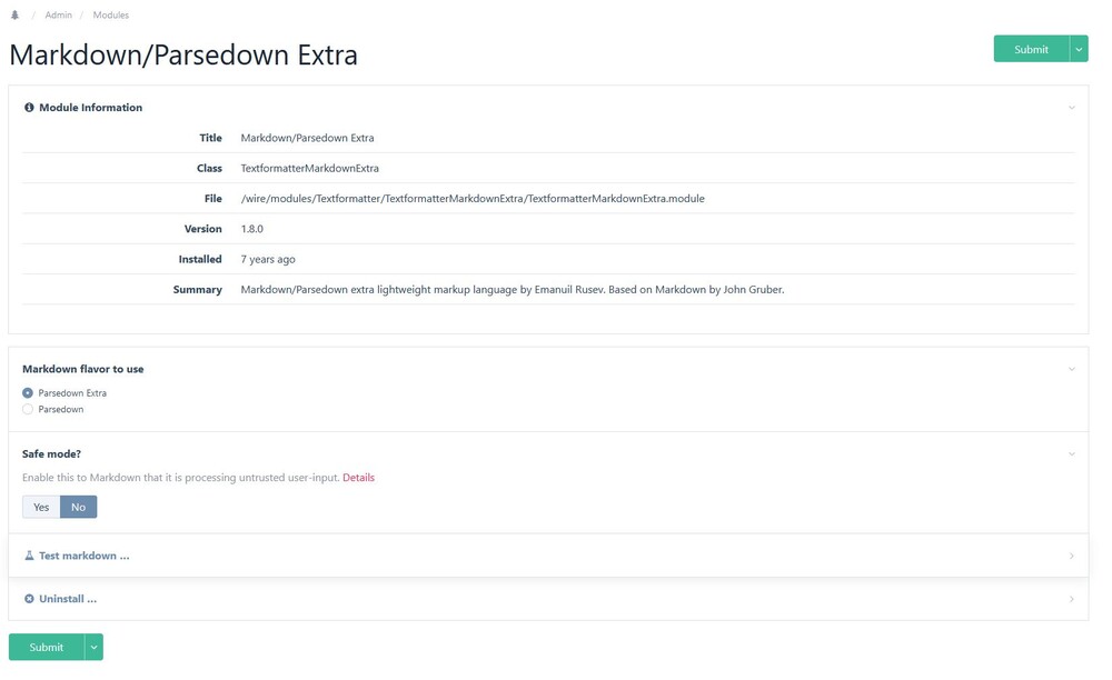 My only issues with mixing HTML and Markdown came up when trying to edit with the Front-End textarea, never in the Admin side. But i only use HTML mixed with Markdown when i forget the syntax. (getting old i guess). Like you i have problems with the Front-end textarea adding linebreaks only if i change something, because if i leave it untouched the Front-end refuse to save because there is no need. I have safemode turned of for some reason, can´t remember why right now. I can manage without the Front-end stuff but it would be good to know what is causing this problem. A question for you @wbmnfktr, could the order of your textformatters change your outcome to your problems ?