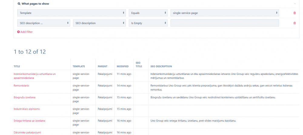 What I'm missing here? Why does "is empty" does not work? seo_description is multi-language textarea field.