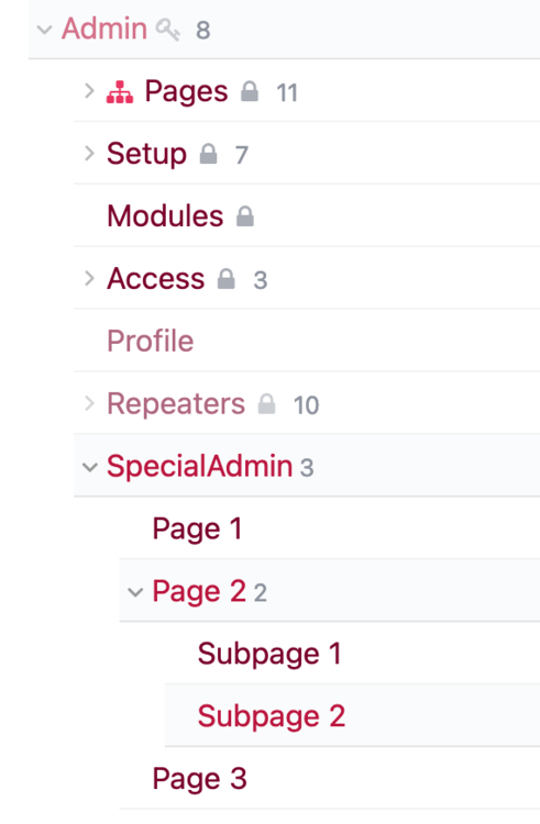Is there a limit to how many hierarchy levels you can create below a new page visible within the PW Backend (Admin)? I can't manage to display more than two navigation levels. Page Tree: Navigation inside PW Backend: