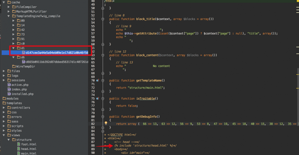 content of cached page on line 88 (please see the screenshot cached_page.png and dir_FileCompiler_cached_page.png)